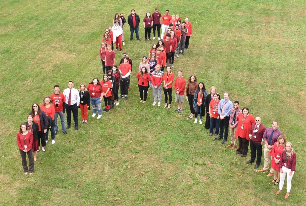 1: Students, staff and administrators formed a human red ribbon outside of Seaford High School on Oct. 28 for Red Ribbon Week.