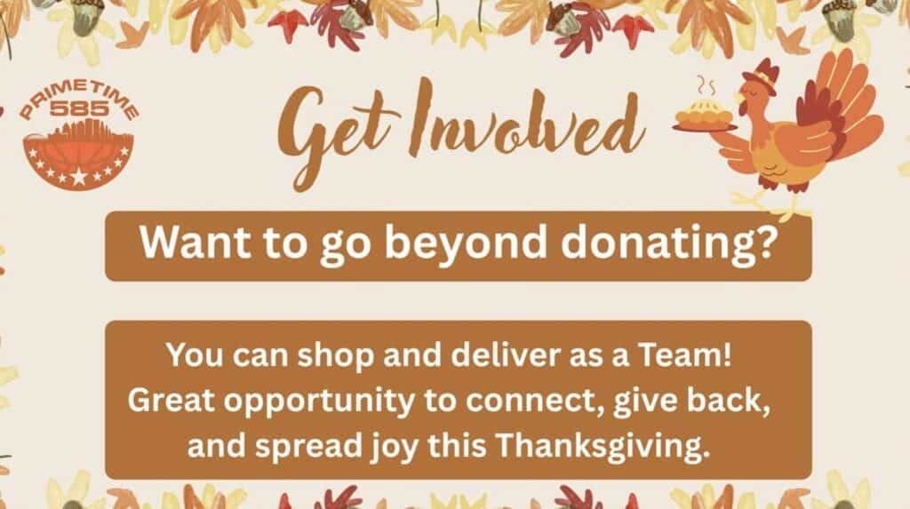 Student-athletes across Section V came together with Primetime585 this Thanksgiving season for one of the region’s most impactful community service efforts. Dozens of teams stepped up to adopt families, shop for food, assemble baskets, and personally deliver Thanksgiving meals to seniors and community members in need.