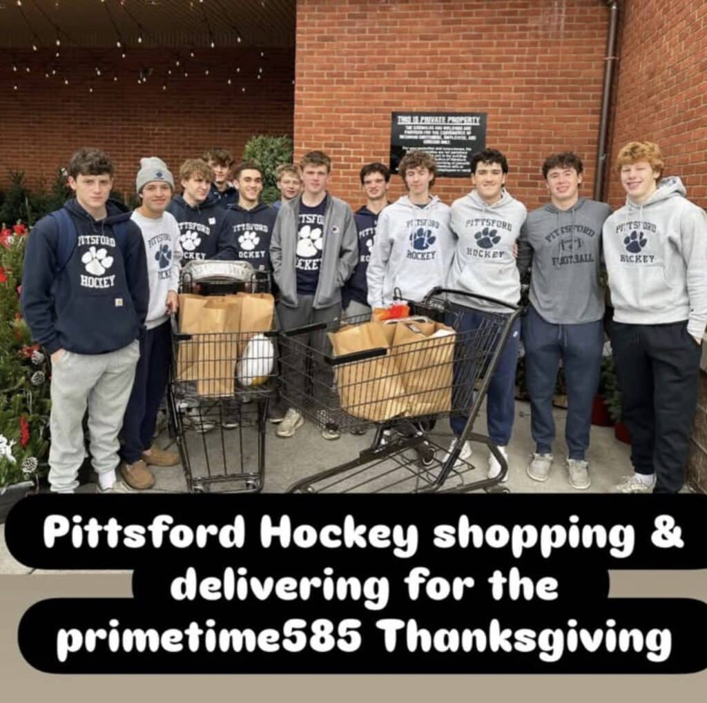 The Pittsford hockey team turned out in full force, gathering groceries and delivering completed baskets. Their commitment and teamwork were on full display throughout the entire process.