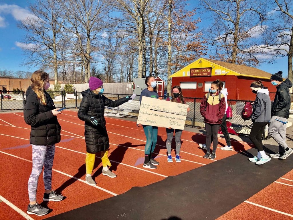 The DCRSD New Years Resolution 5K (which the student-athletes hope will become an annual event that can eventually shift to a live, in-person road race) drew in close to 60 participants, and even more t-shirt purchases to support their cause. Ultimately, this group of kind, thoughtful student-athlete leaders raised a total of $1374.33 over the course of their virtual event, which was presented to Mrs. Renee Paire at the Shepherd Hill track complex.