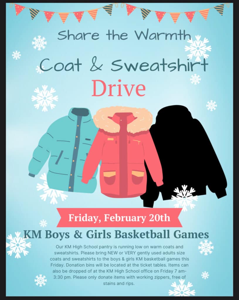 On Friday, February 20, the KM High School community came together to support those in need through the Share the Warmth Coat & Sweatshirt Drive, held in conjunction with the boys’ and girls’ basketball games.