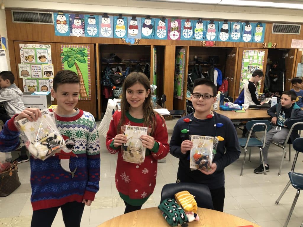 Photo caption: Smithtown Elementary School’s fourth graders recently completed a community service project to give back to those who help their community and country. They collected and donated socks from their school community throughout the holiday season. Along with the socks, the students crafted cards which were donated to active service members at Gabreski Airport in Westhampton Beach and members of the Smithtown Volunteer Fire Department.