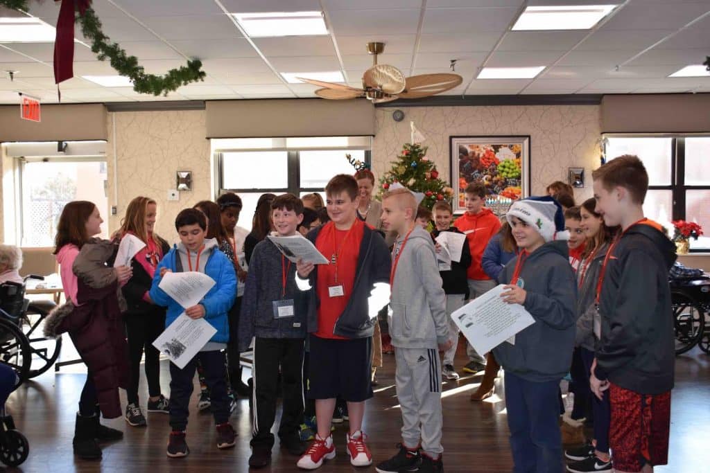 The fifth-graders at Mills Pond Elementary School in the Smithtown Central School District worked to brighten the day for residents at St. James Rehabilitation and Healthcare Center on Dec. 19.