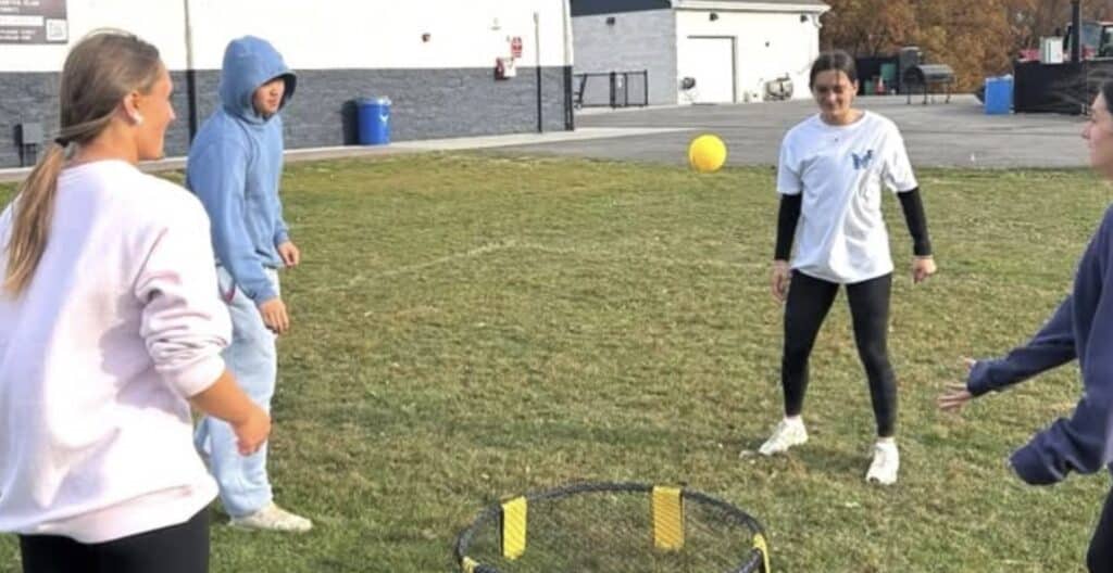 Smithtown West DECA senior officers Ashlynn Renkowski and Isabella Paliwoda proudly hosted the “Spike Away Stigma” Spikeball Tournament recently as part of their Community Awareness project.
