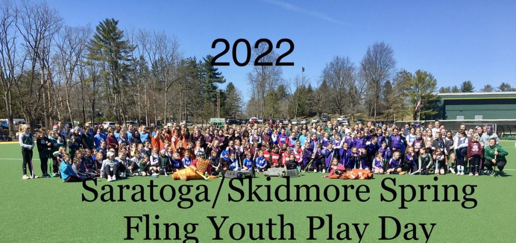 Over the years we have worked together with Skidmore College Field Hockey to provide field hockey opportunities for all. This community event my Varsity Field Hockey players and Skidmore Field Hockey program worked together to provide a great field hockey opportunity to the youth of the capital district. This particular youth play day featured 26 youth teams in grades 3-6. The Skidmore team provided an hour clinic for all of the youth and then officiated small type games for the other two hours. My varsity players worked at the concession/merchandise stand and helped coach our Saratoga youth teams.