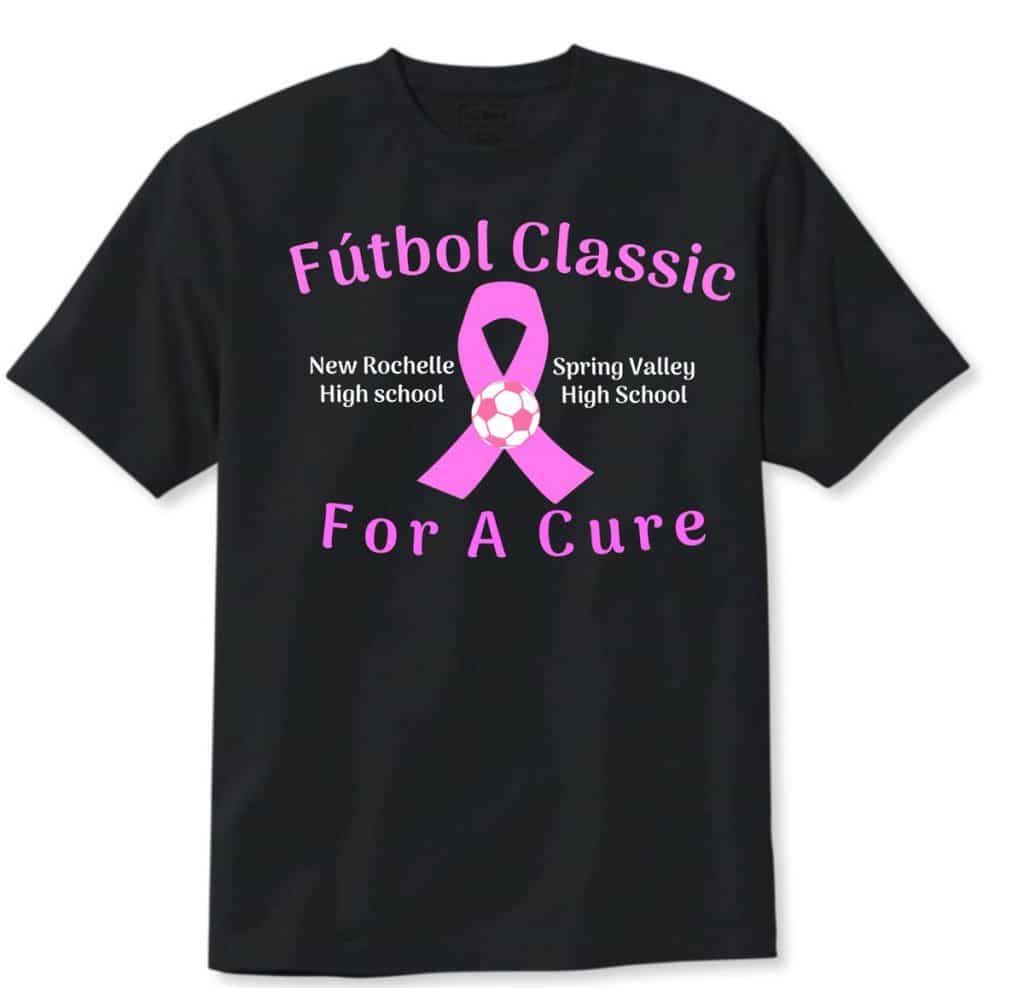 New Rochelle HS will be coming over to Spring Valley HS on Monday, 10/8 to play a junior varsity game at 1pm and varsity game at 3pm. Both teams will be wearing the Futbol for a Cure t-shirts during warm-ups and Spring Valley will be wearing pink jerseys during the game.