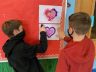 2) Student council members Cooper Abrams (left) and Logan Maurer (right) helped display the hearts in the building.