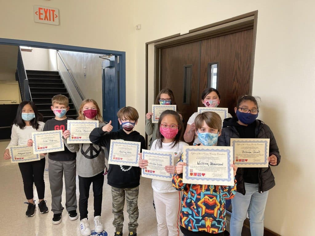 Photo Caption: Francis X. Hegarty Elementary School students received certificates for their Valentines for Veterans participation.