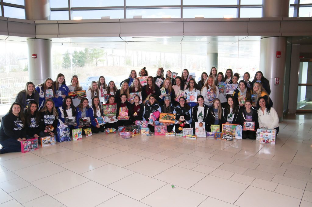 We had 15 Suffolk County Varsity Cheer Team participating in a Toy Drive at Stony Brook Hospital and 50 girls went to the hospital Sunday to drop off the donated Toys