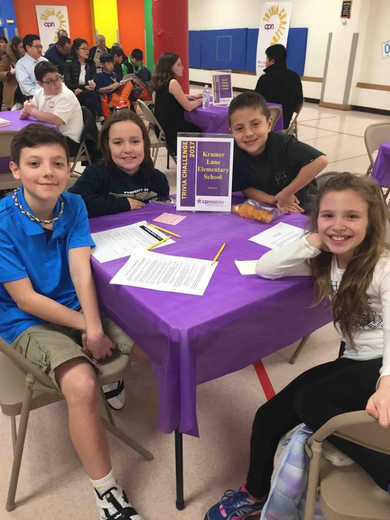 Students at Kramer Lane Elementary School in the Bethpage Union Free School District participated in the United Cerebral Palsy Association of Nassau County’s Trivia Challenge event. Trivia Challenge is an academic fundraising event that combines education, philanthropy and fun. In teams of four, participating students take a 100-question Trivia Challenges written test, which covers a wide variety of subjects from academics to popular culture. Students raise money for UCPN by asking their family and friends to sponsor them to take the test. A team of Kramer Lane fourth-graders placed sixth and a team of fifth-graders placed fourth overall.