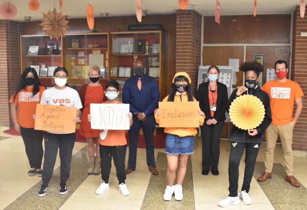 October marks National Bully Prevention Month, an initiative of the PACER Center, and the middle school participates every year. Social worker Beatriz Offitto said that Unity Day is the centerpiece of this awareness campaign to show that the school community stands together against bullying. Students and staff were encouraged to wear orange to show their support.