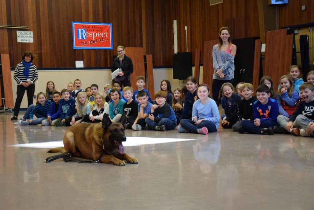 2: Students were excited to meet Johnny, a dog in the canine unit.