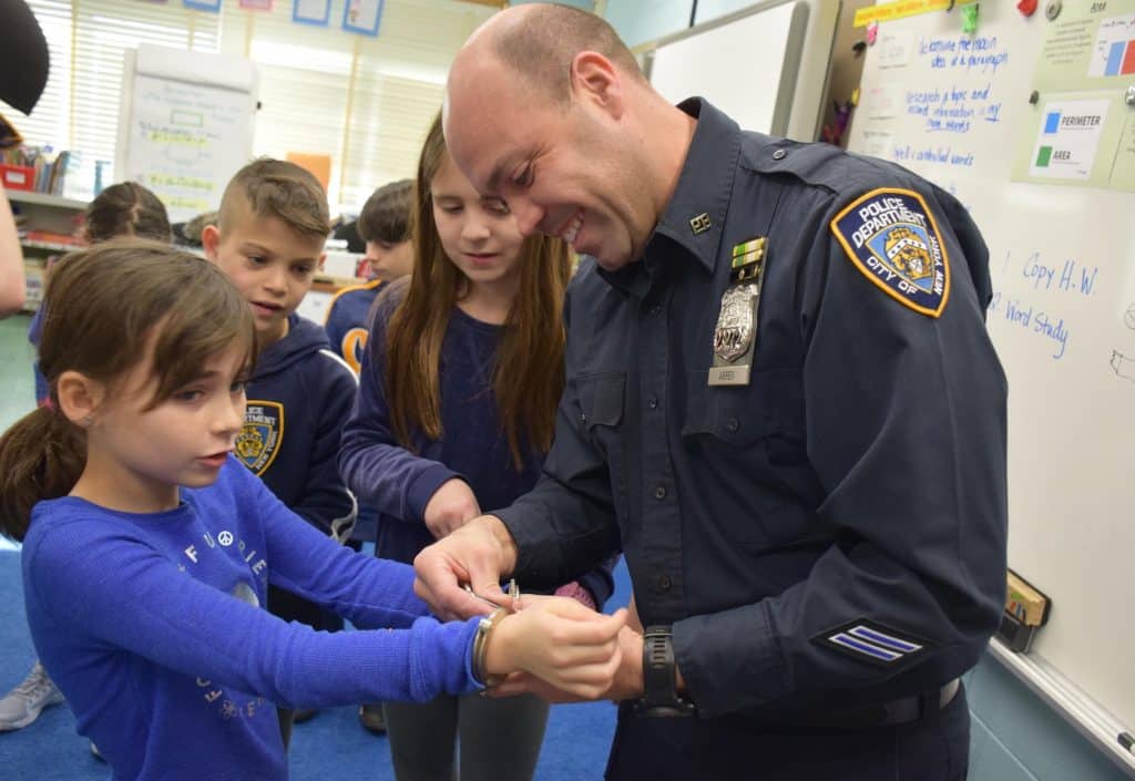 6: Fourth grader Anabelle Kahn experienced what it’s like to be in handcuffs from Officer John Abreu.