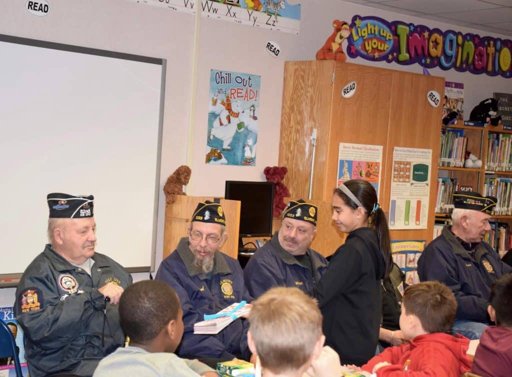 - Stewart Manor School fourth-grader Selena Jones presented veterans from Elmont American Legion Post 1033 with Valentine’s cards for members of the post.