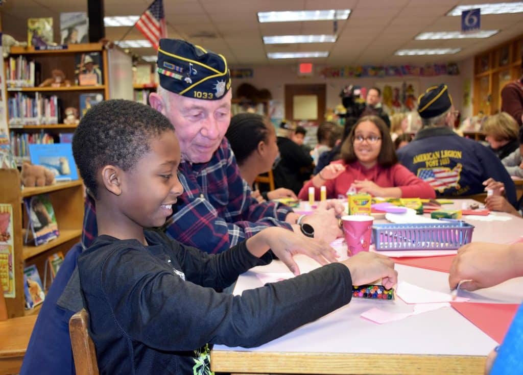 - Stewart Manor School fifth-grader Emmanuel Pinkney took suggestions for what to write in his Valentine’s Card from veteran Gene Van Haaren.