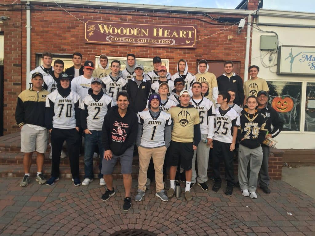 Varisty football team helping out with the John Theisen Freaky 5K Run