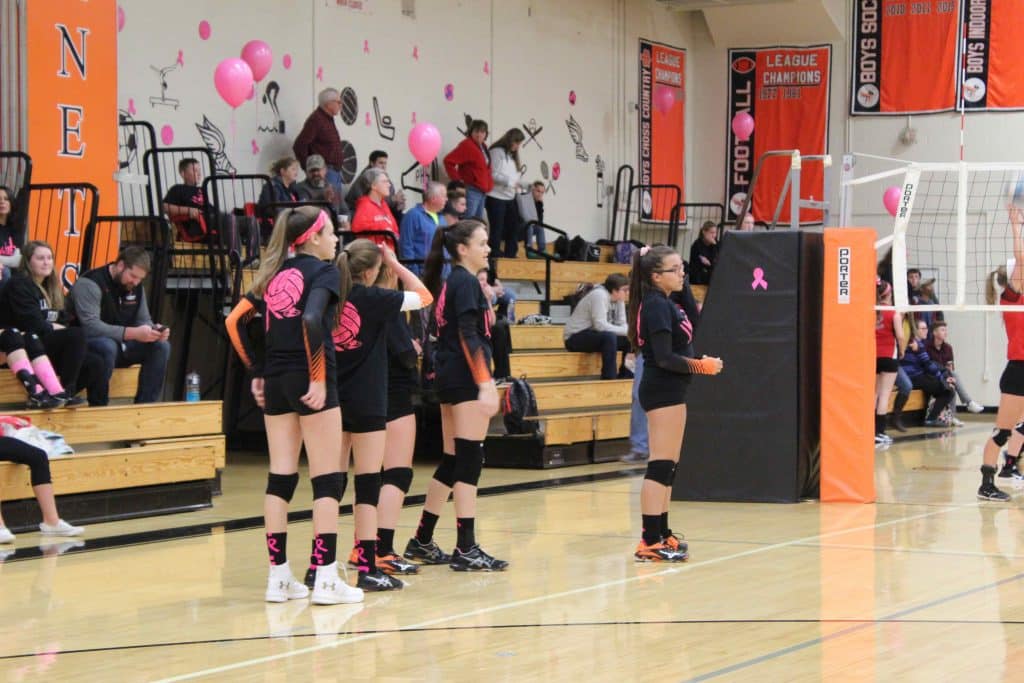 Volley for the cure is a community wide fundraiser that the Plattsburgh volleyball team that started 3 years ago. Each year the amount fundraised has grown tremendously. Starting out our first year with only raising $500, we knew we could do more the following year. Last year we raised $3,000, and this year we have raised $8,936.37. The athletes, coaches, and administration got together at the beginning of the season to pick a scheduled game in October to hold this event, t shirts and baked goods were sold at the door, while donations were accepted from spectators. Faculty, administration and the student body all participated in buying and selling volley for a cure t shirts. The volleyball team advertised the event on social media as well as hung up flyers around the school and had baked goods to sell during the event. On October 15th everyone who purchased a t shirt wore it during the school day, as well as to the volleyball game that evening. This event spreads awareness for a cure of breast cancer as well as bringing the community together by participating in such a family oriented event. With October being breast cancer awareness month we find it very fitting to hold this event year after year, due to the fact that the proceeds stay in the area and help the families that live here, including the families in our district. The proceeds all go to the Fitzpatrick Cancer Center at the University of Vermont Champlain Valley Physicians Hospital. As a coach I feel it is important to teach our young athletes/students that giving back to the community can be very rewarding. I know that each year these young athletes are excited to participate in our event.