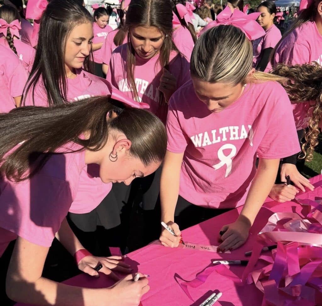 The Waltham High School Cheer team continues to lead with heart, dedicating their time, energy, and spirit to supporting those affected by cancer throughout the fall season. From September through October, the Hawks stepped up in powerful ways to honor fighters, support families, and rally their community.