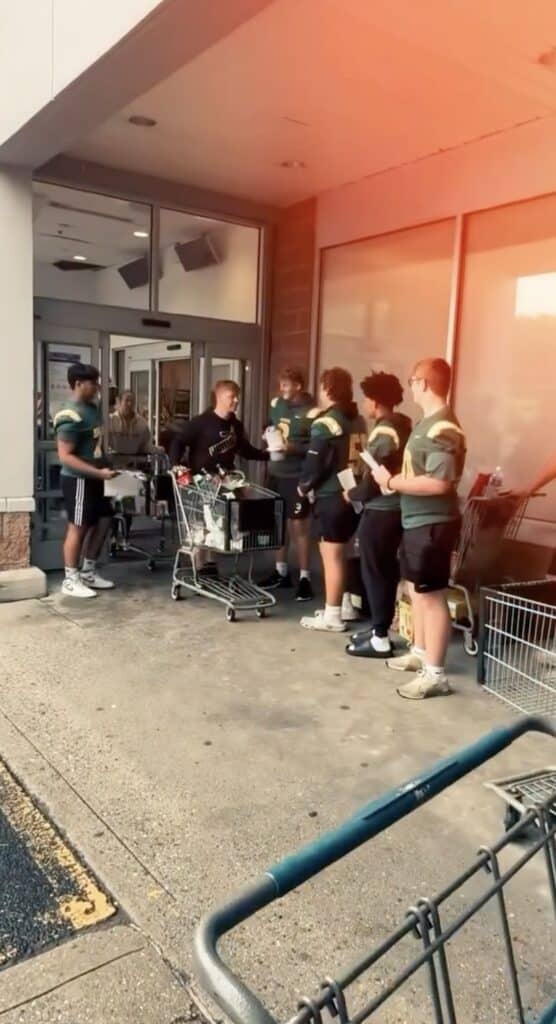 The boys worked side-by-side gathering canned goods, pantry staples, and essential items—all with the same teamwork, energy, and determination they bring to game day. Their service reflects the core values of the program: leadership, compassion, and strengthening the community they proudly represent.