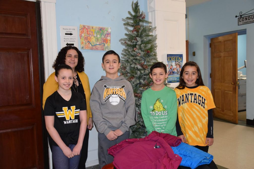 Photo caption: Wantagh Elementary School Principal Dr. Randee Bonagura is pictured with fifth-grade student council members (l-r) Molly McHugh, James Dicerbo, PJ Falco and Sabrina Asadurian who helped collect coats for area homeless shelters.