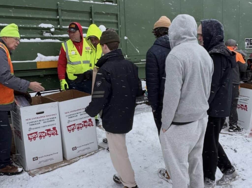 Approximately 50 Warwick Lacrosse members from grades K–12 participated in the event, donating toys and volunteering their time to help load the train for over an hour. Their enthusiasm, teamwork, and commitment to giving back were on full display throughout the morning.
