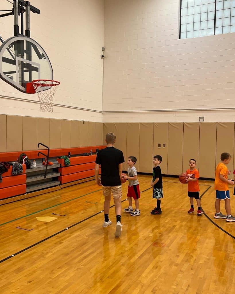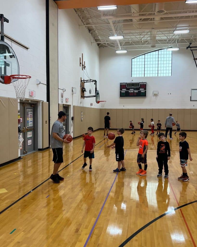 Youth basketball started today for Grades 1-2. Varsity Boys are helping out.