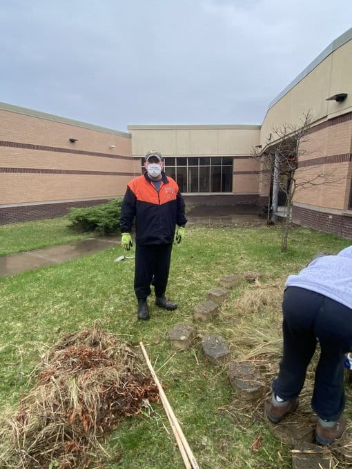 There is a lot of history with the garden that the Varsity Club worked to overhaul the other day. It was initially dedicated to a varsity wrestler that died in 2009 in an automobile accident. The event shook up the school quite a bit as you can imagine. After the 2010 class graduated the flower garden fell into disrepair. As a focal point for those working out, specifically on treadmills in the fitness center, we thought that it would be appropriate for Varsity Club to take it over and re-vamp it.