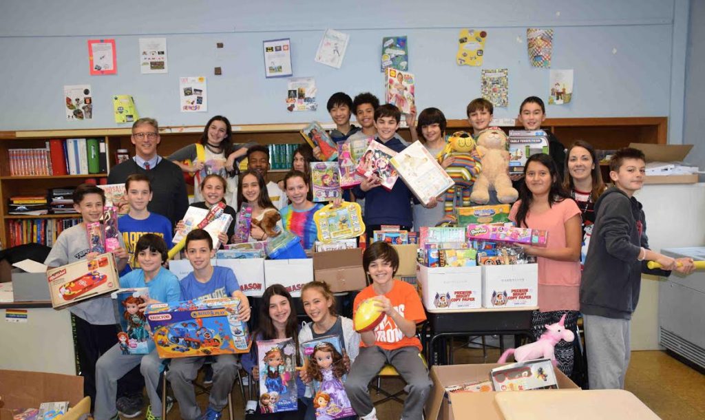 Students student athletes and faculty members at Weber Middle School in the Port Washington School District held their third annual toy drive to benefit hospitalized children in the Winthrop University Hospital through State Senator Jack Martin’s annual toy drive.