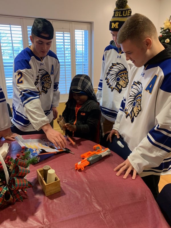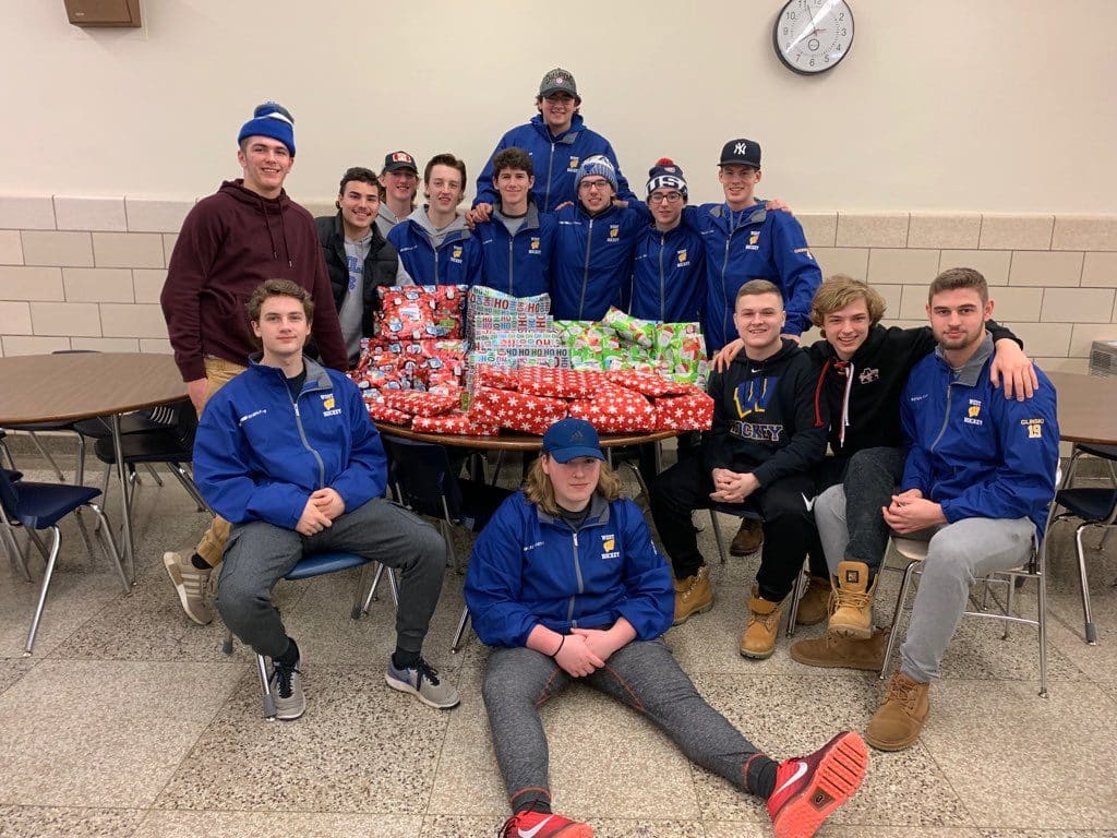 My name is Mike Flury. I am one of the assistant captains for my high school Fed hockey team. We all never really think about what we ask for, for Christmas. I think we just take for granted what we have. A family friend had some medical problems, and we later found out he had no insurance to pay for his medicine. I asked my mother about insurance and his medical problems. We, unfortunately, were not able to help him and his family so we decided to try to help someone else, we decided to adopt a family for Christmas. We asked our coach and he thought it was a great idea. My mother knew of a place in Buffalo that helps homeless women and children. We were able to get the name of a family that had things they needed. The family had a mother and three children, 11,8 and 6 years that lived at this shelter. They are from Nigeria. The father was killed in the military there and the mother is working on her GED here and volunteers at a local hospital, hoping that she will be able to get a job there someday. My whole team, 21 players participated in this. We asked our families to also donate to our cause and everyone was very generous. We all went shopping with the help of a few moms. We had a list for each family member and we were shocked to see what was on their lists. We all ask for things like XBOX and cellphones and these people just wanted simple things like shoes, jackets, and clothes. We spent about 2 hours shopping and laughed with our moms at things we were picking out because we had a budget to stick to. We then went back to our cafeteria to wrap all of the gifts. This was more of a challenge than shopping because most of us never wrap gifts! It was a good team bonding experience and it made us feel good to see what we bought for all of them. We were then able to go meet the family and give them their gifts. They were very shy at first but once we all jumped in and told them to dig in and open their gifts it was fun for all of us. The mother cried when she opened her new jacket and hugged all of us. The best part was seeing the kids open their gifts and yell and be excited. We got to hang out and play with them for about an hour, which was great. That made the whole experience worth it. It was a definite eye-opener for all of us to see how they all lived and what they don’t have. It was a sad situation but we felt good knowing we were able to help them and give them a great Christmas! It is all about giving back and being able to help someone. There is always someone that can use your help, you just have to open your eyes to what is around you.