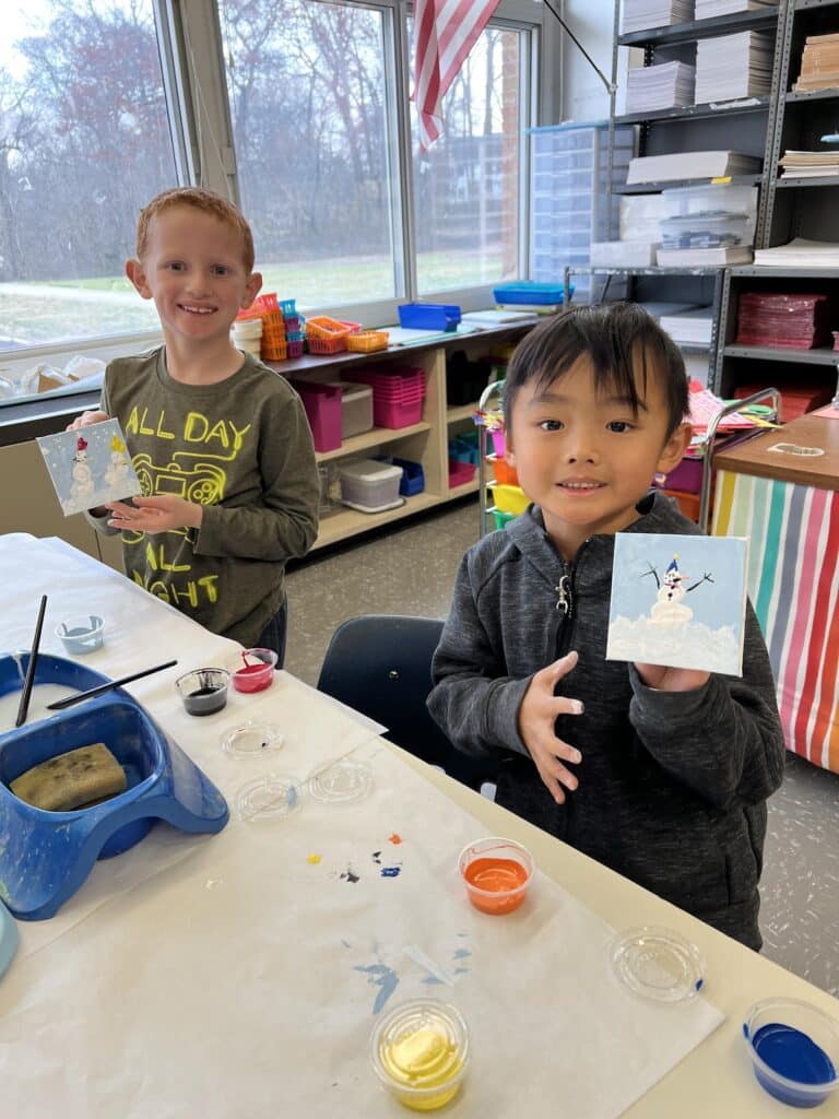 Photo captions: Second graders at Wenonah Elementary School are drawing smiles with their artwork. During art class with Ms. Douglas, students have been creating miniature winter scenes on small canvases that were provided by second grade teacher Mrs. Licurse. Once students complete their artwork, the pieces will be sent to those residing at the Arbors Assisted Living Facility in Bohemia.