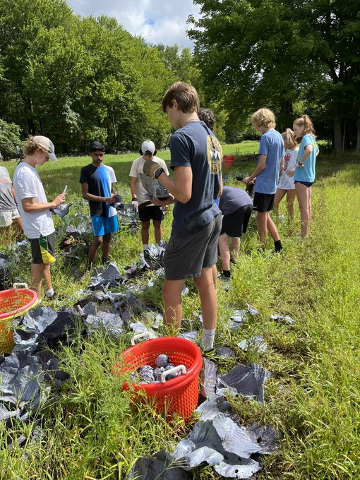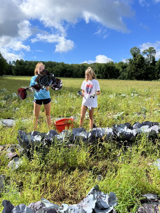 We volunteered at Community Harvest Project in Aug, and harvested almost 300 pounds of cabbage, along with weeding and pulling up old weed barrier plastic. We worked for about 3 hours that day. 29 of us worked that day.