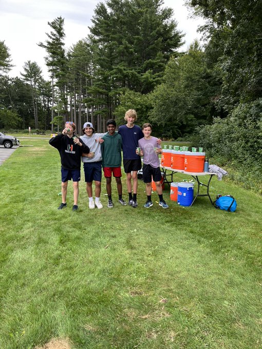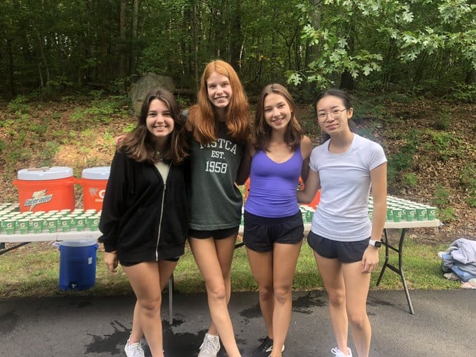 We had 25 of us from the boys and girls cross country teams volunteering as course marshalls all around the 5k course. We manned two water/Gatorade stops, directed runners and cyclists at turns on the course within the state park, and offered encouragement. We arrived at 6:30am and volunteered until 11am