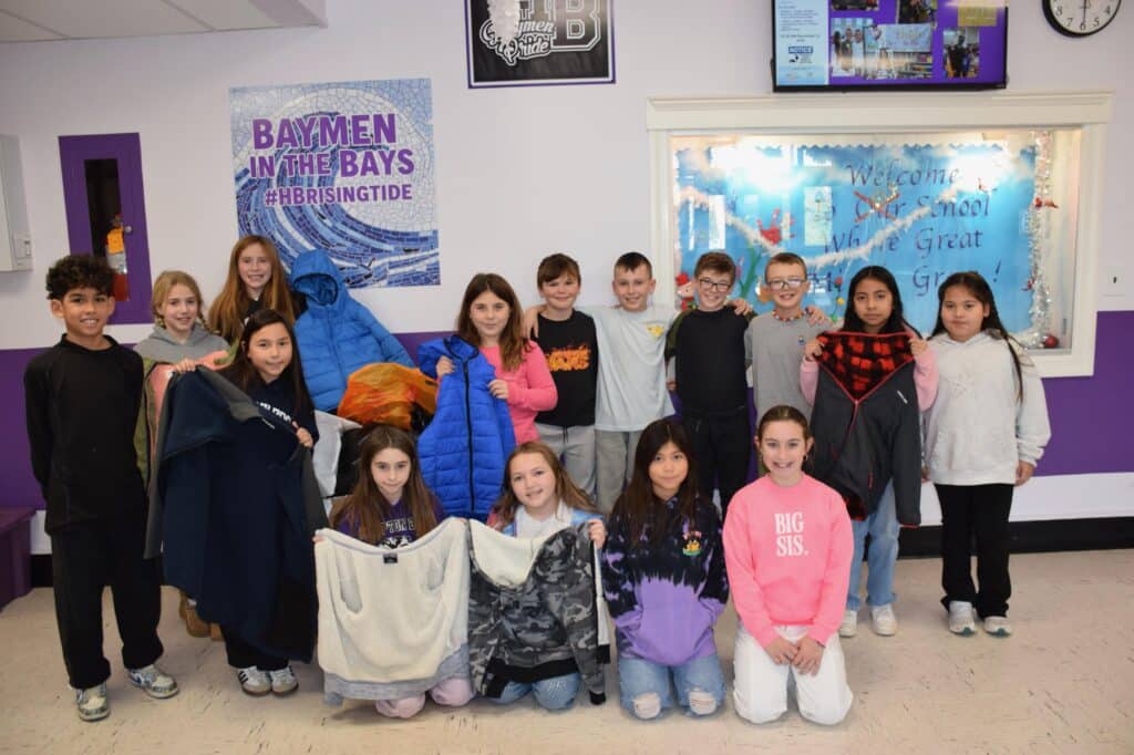 Photo caption: Members of the Hampton Bays Elementary School K-Kids service club recently hosted a successful drive to collect warm coats for those in need. All items will be donated to local community members in need.