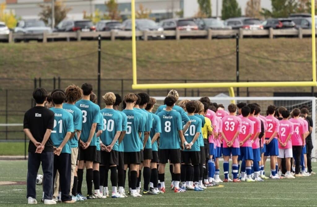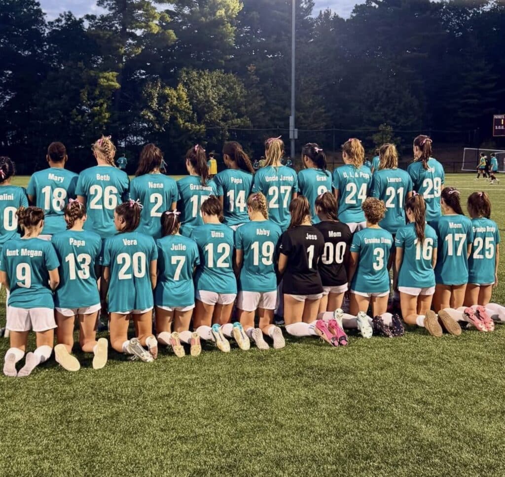 Broad community enthusiasm for Kicks for Cancer was visible as soon as the school year launched in Concord and Carlisle. Well before game day, pink and teal lawn signs dotted yards across Concord, Carlisle, and neighboring towns including Sudbury, Lincoln, and Bedford. The Friday before the event, schools were awash in pink for Pink Day, with students, faculty, and staff proudly donning the iconic pink Kicks for Cancer jerseys. Local businesses also rallied around the cause, hosting events and fundraisers to amplify the message of “One Community, One Goal.”
