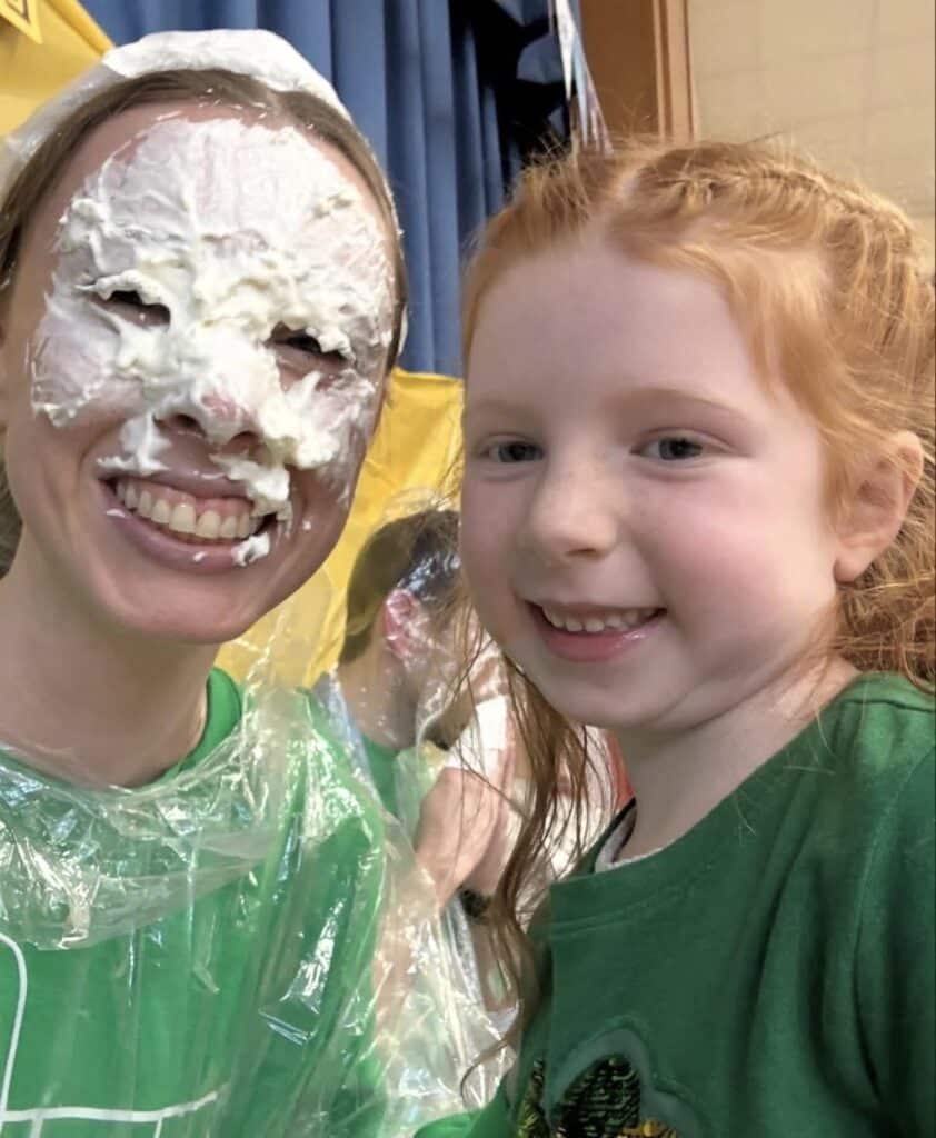 Photo caption (1-3): The Leadership Club at Francis X. Hegarty Elementary School in Island Park hosted a Pie-A-Teacher raffle fundraiser to celebrate Pi Day (March 14), raising over $1,100 to benefit Ronald McDonald House of Long Island. Held on March 17, St. Patrick’s Day, the lively event brought students and staff together in a celebration of school unity.