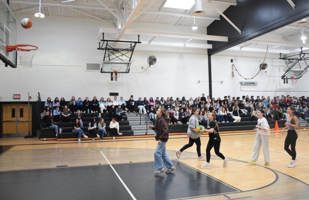 The event was held for the 30th time and hosted by the physical education department. Three dozen winners from competitions in sixth, seventh and eighth grade P.E. classes were on the court for the finals, with the rest of the eighth grade class filling the bleachers to cheer on the players.