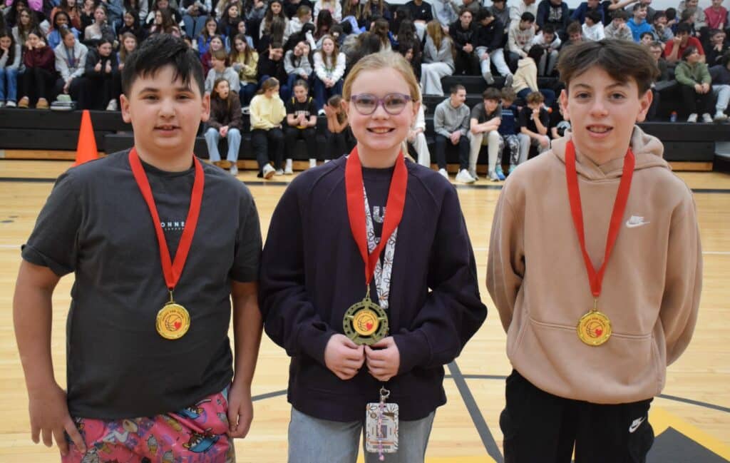 Over several weeks, students got donations for the American Heart Association, with the middle school raising a collective $4,695 for the organization. The top three fundraisers were recognized before the final round – Hadley Schwarz ($659.51), Landon Fusco ($571.89) and Jace Tawfik ($481.57).