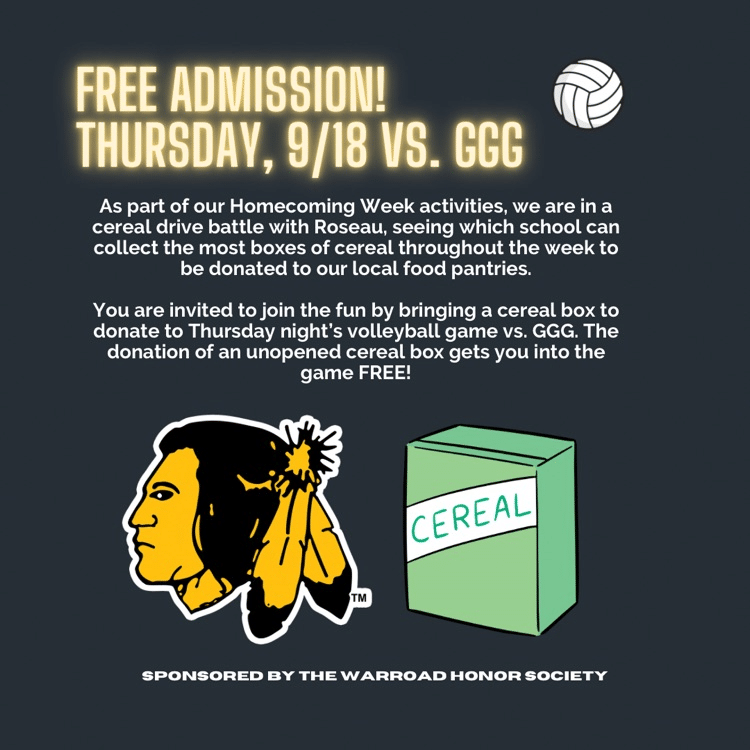 Led by the Minnesota Honor Society and Student Council, Warroad students launched a Homecoming Week Cereal Drive Challenge against their rivals in Roseau. With both schools celebrating Homecoming the same week, the timing was perfect for a community-wide showdown for a great cause.
