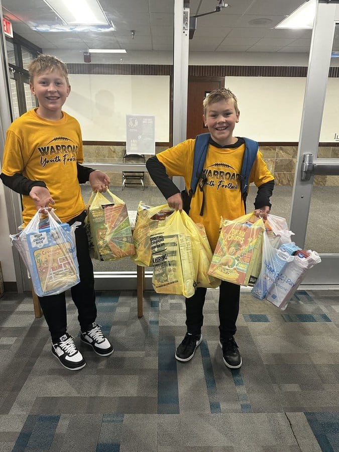 The impact, however, went far beyond the friendly rivalry. The majority of Warroad’s donations went to the Warroad Food Shelf, while about 100 boxes were shared with the Grygla Food Shelf, whose community had joined in during the volleyball Homecoming game. Another 100 boxes were donated to the school’s backpack program, helping ensure that students in need have food to take home each week.